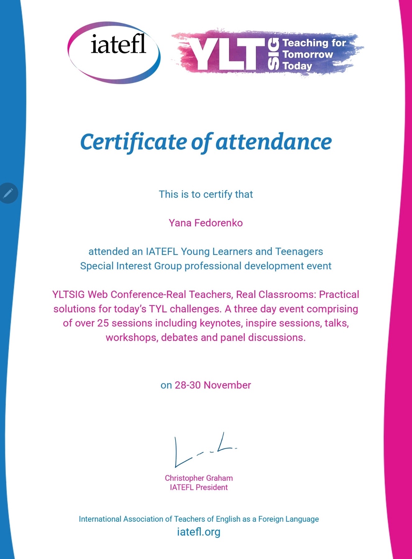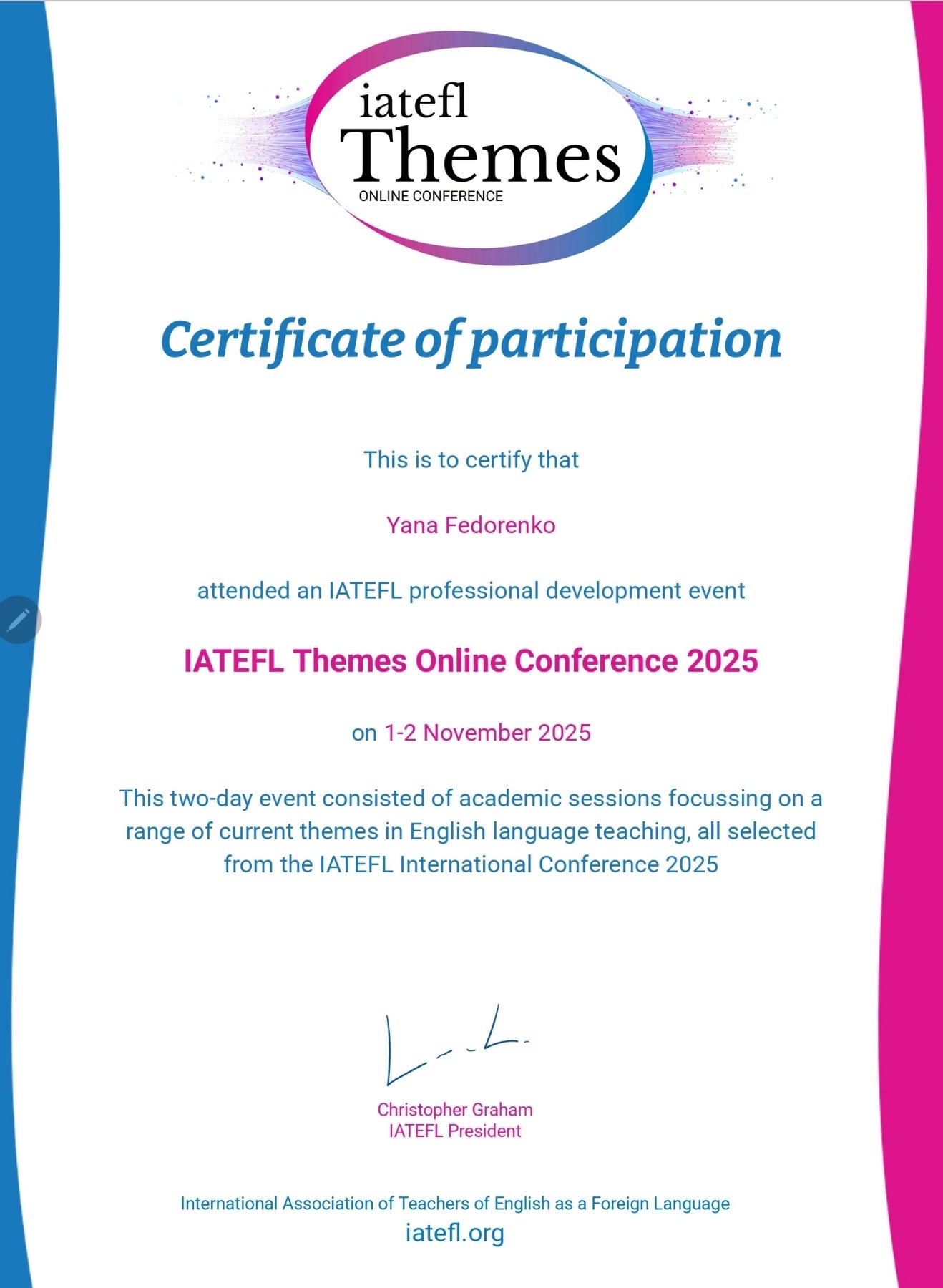 Досвід проживання і викладання закордоном. Комунікативний, лексичний підхід викладання, індивідуальний підхід до кожного. За освітою: філолог-перекладач, зовнішня політика, CELTA.